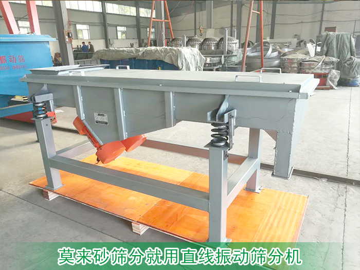 大漢機(jī)械生產(chǎn)的直線振動篩分機(jī)利用振動電機(jī)作為激振源,使莫來砂在篩網(wǎng)上被拋起,同時(shí)向前做直線運(yùn)動,莫來砂在給料機(jī)上均勻地進(jìn)入篩分機(jī)的進(jìn)料口,通過多層的篩網(wǎng)產(chǎn)生數(shù)種規(guī)格的莫來砂,分別從各自的出口排出。以達(dá)到篩分目的。