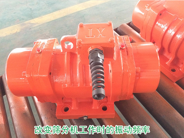 可改變篩分機(jī)工作時的振動頻率與其自身固有的振動頻率為不一致的頻率,可通過振動電機(jī)改變篩分機(jī)的振動頻率從而達(dá)到防止共振的目的。(可調(diào)節(jié)電機(jī)兩端的偏心塊夾角來改動激振力的大小,夾角小,激振力變大,振幅變大;反之,夾角變大,激振力變小,振幅變?。?。